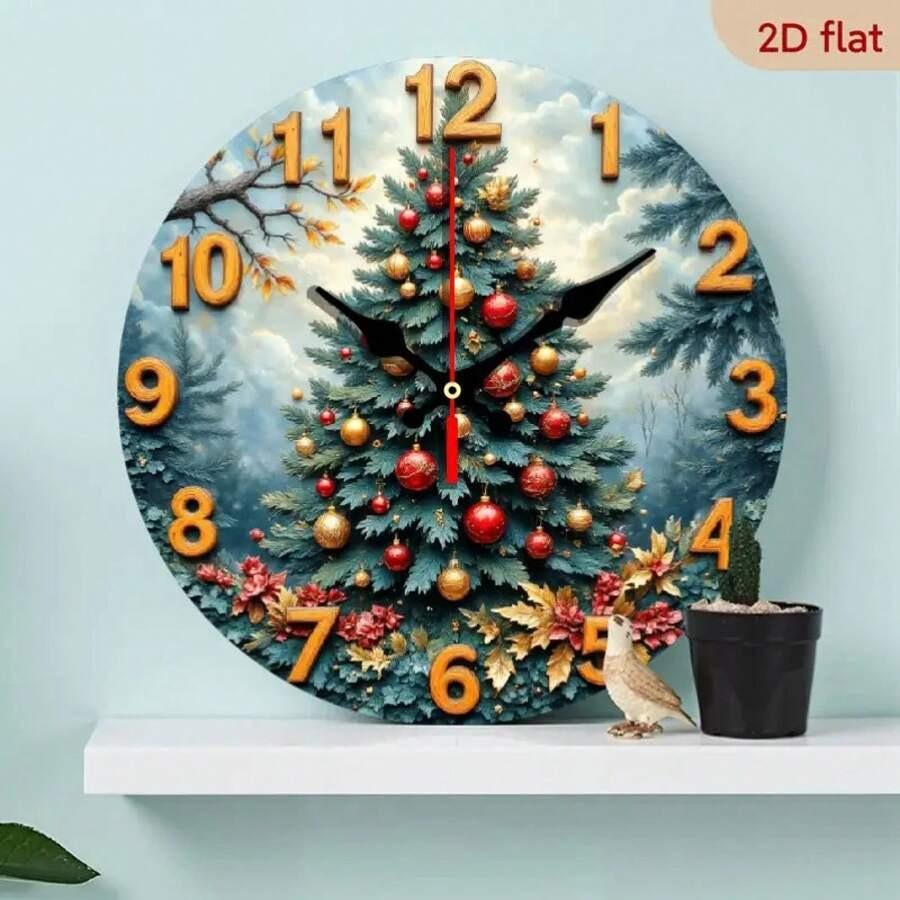 This 10-inch (25 cm) Christmas Wall Clock features a festive Christmas tree word design, printed in high-quality 2D flat UV print on durable MDF wood. A perfect decorative holiday clock for your home.