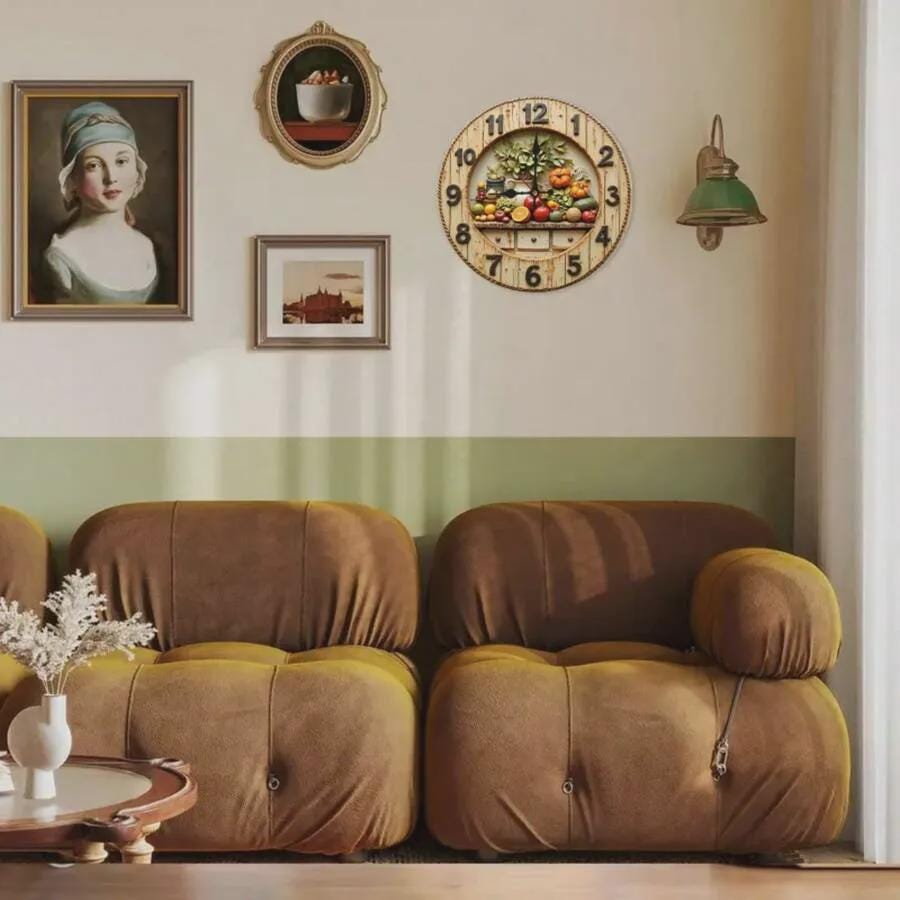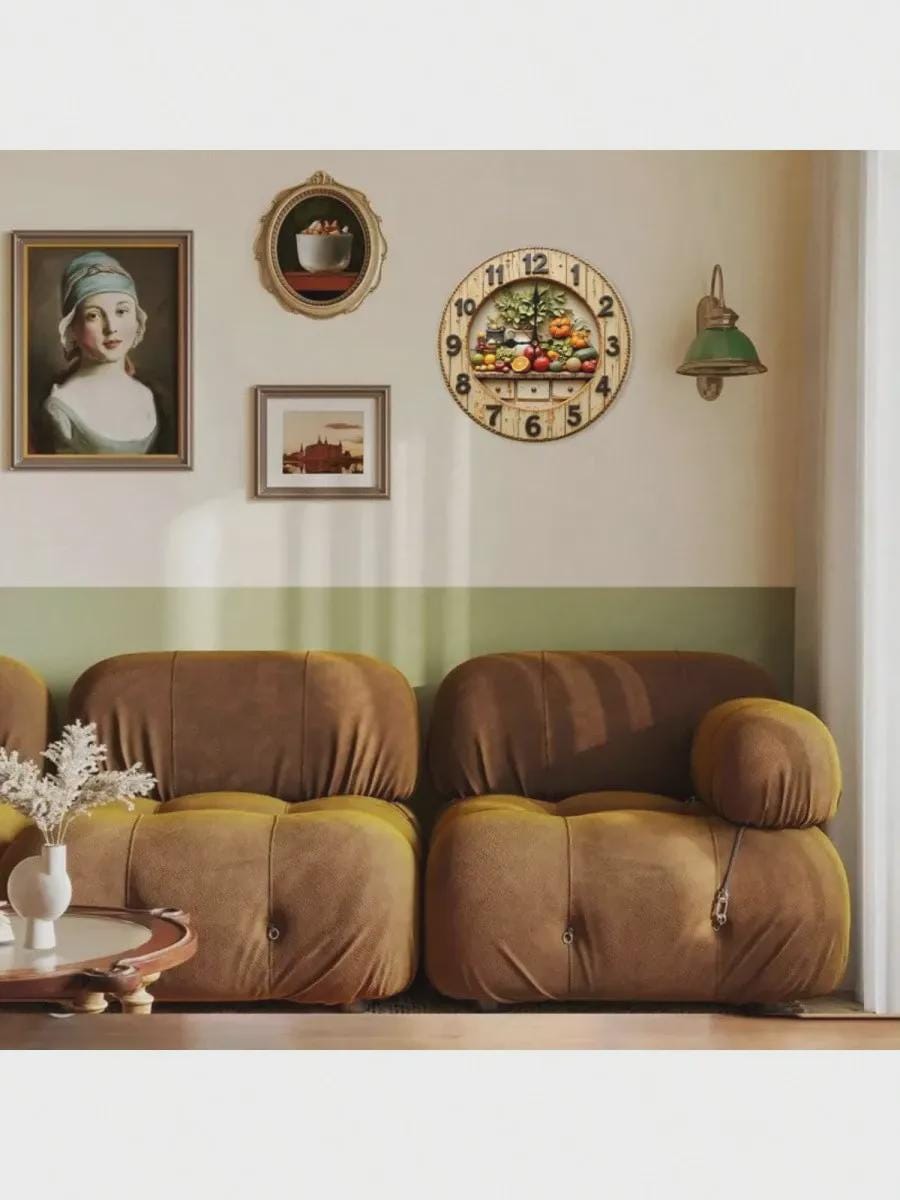 Célébrez la douceur des récoltes toute l'année avec cette horloge murale rustique, fabriquée en MDF léger et magnifiquement imprimée en haute définition pour un effet 3D sur une surface plane. Représentant une scène sereine de fruits et légumes colorés, cette horloge est parfaite pour les cuisines de style campagnard, les salons chaleureux ou les espaces de travail qui ont besoin d'une touche naturelle et apaisante. 🍎🕰️🥬